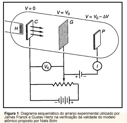 Em 1914 James Franck e Gustav Hertz forneceram uma prova experimental cabal para a hipótese da quantização de energia nos sistemas atômicos utilizando o arranjo experimental esquematizado na figura 1.