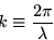 O número de onda k, representa uma contagem em unidade de comprimento de onda. É definido como: