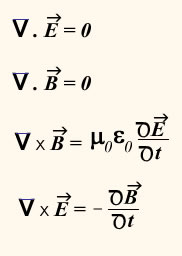 As equações de Maxwell possuem soluções não-nulas dependentes do tempo, mesmo nas regiões do espaço sem cargas ou correntes (isto é, com ρ = 0 e J = 0). No eletromagnetismo, há um efeito “dominó” que está associado à indução mútua entre os campos![]()